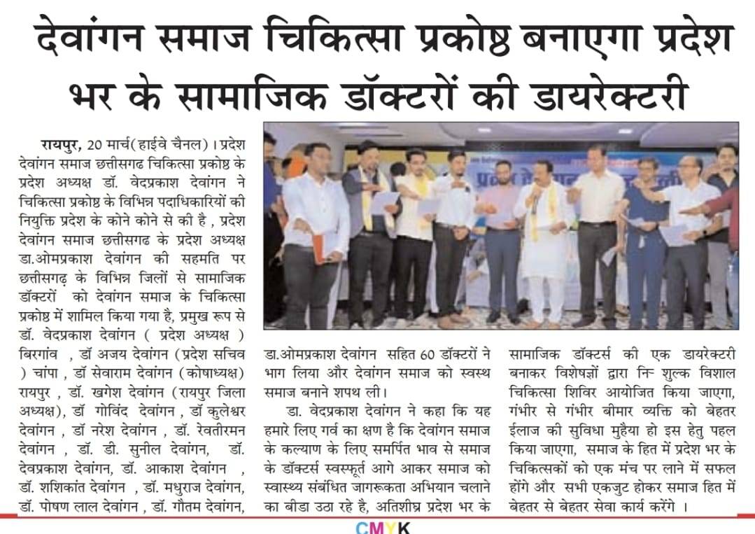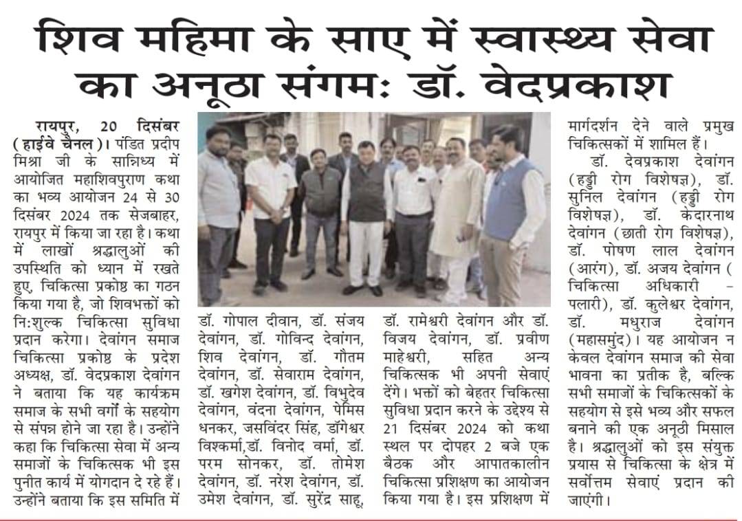 डॉ. वेद प्रकाश देवांगन को बनाया गया देवांगन समाज का चिकित्सा प्रकोष्ठ