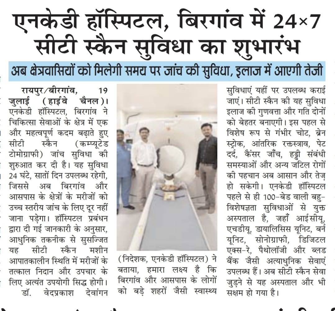 एन.के.डी. हॉस्पिटल में शुरू हुआ 24X7 CT - SCAN का हुआ शुभारम्भ