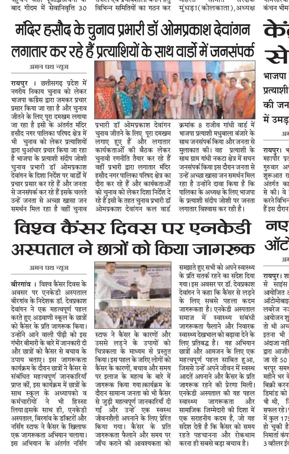 विश्व कैंसर दिवस के अवसर पर एन.के.डी. हॉस्पिटल के द्वारा छात्रों को किया जागरूक