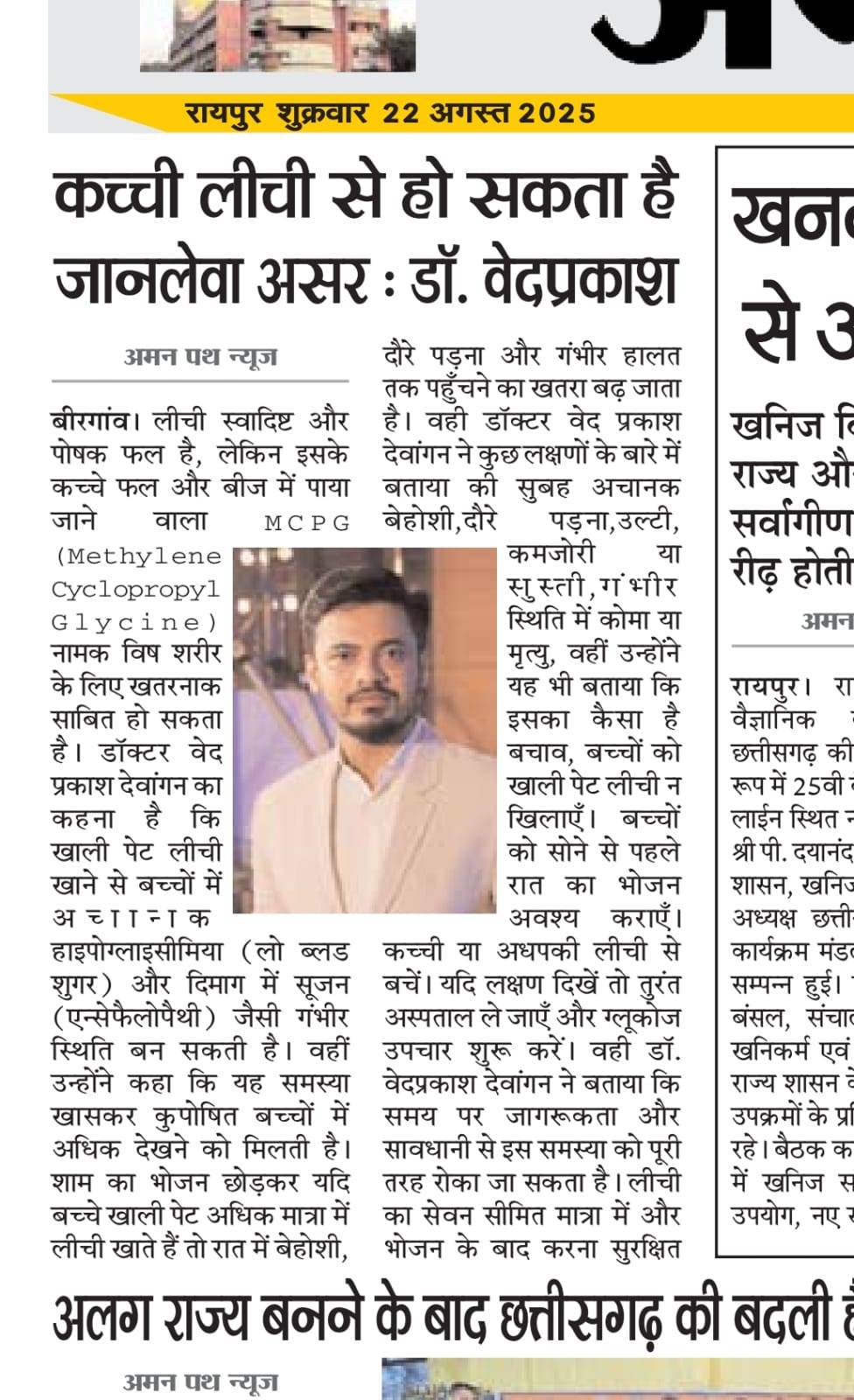 डॉ. वेद प्रकाश देवांगन जी ने बताया कच्ची लीची खाने के नुकसान